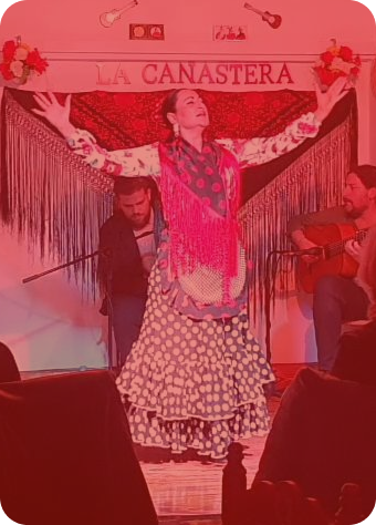En La Canastera, el flamenco es más que un espectáculo, es una forma de vida que se respira en cada rincón del tablao. Nuestro espacio, dirigido por artistas con una profunda trayectoria en el arte flamenco, ofrece actuaciones de gran calidad donde la pasión, la fuerza y la sensibilidad se convierten en protagonistas. Cada función está pensada para que el público no solo observe, sino que sienta el latido de la cultura andaluza, viviendo de cerca una tradición que sigue viva gracias al talento y la entrega de quienes la interpretan.